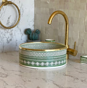 Handmade Moroccan Ceramic Sink Brass rim #99